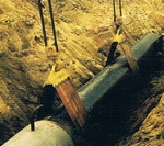 石油管道體積較長,重量大,不便于人力搬運,施工人員使用扁平吊裝帶進行石油管道的搬運作業。